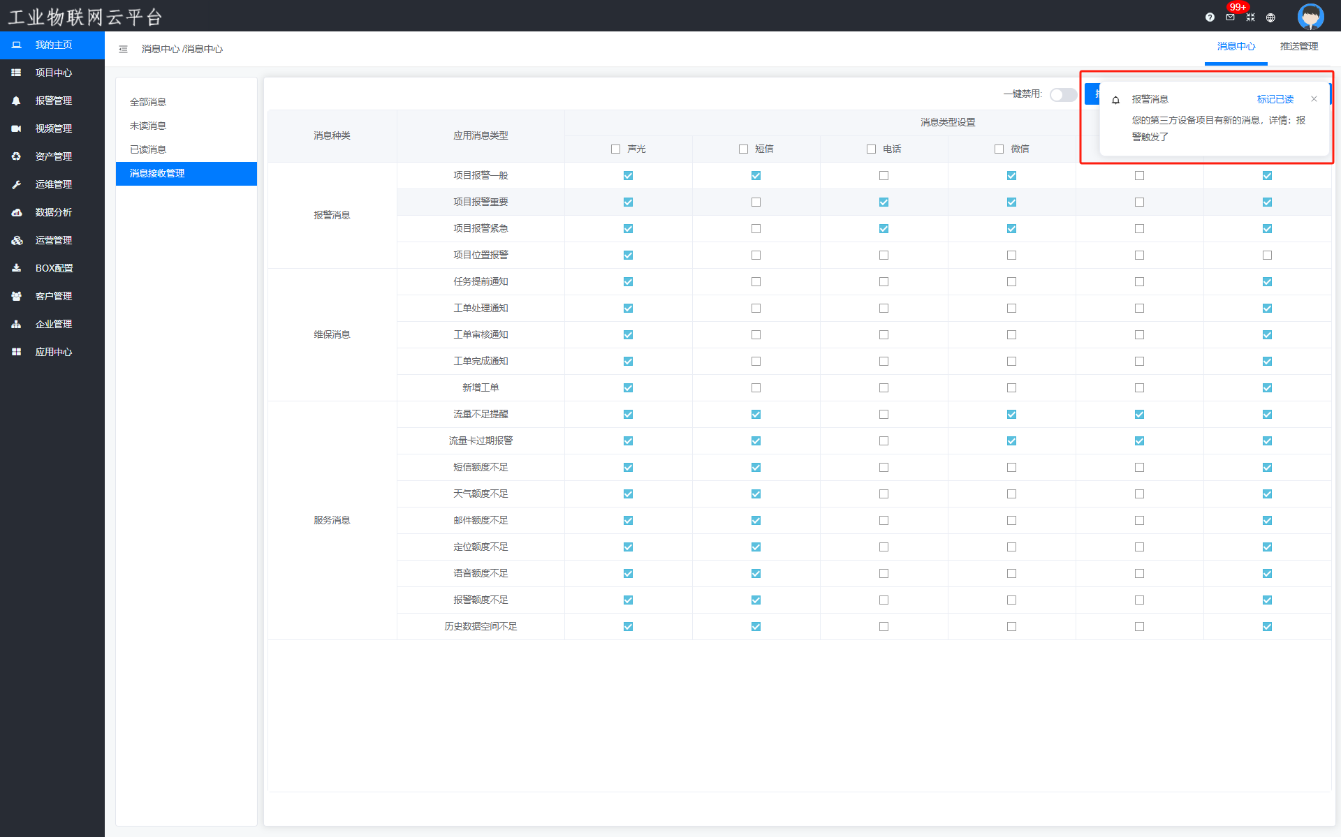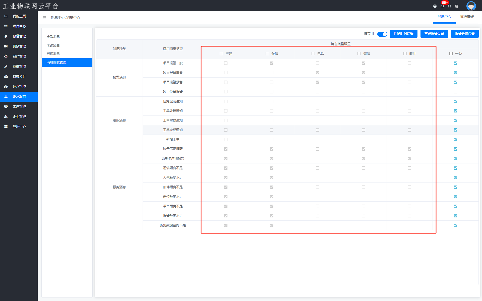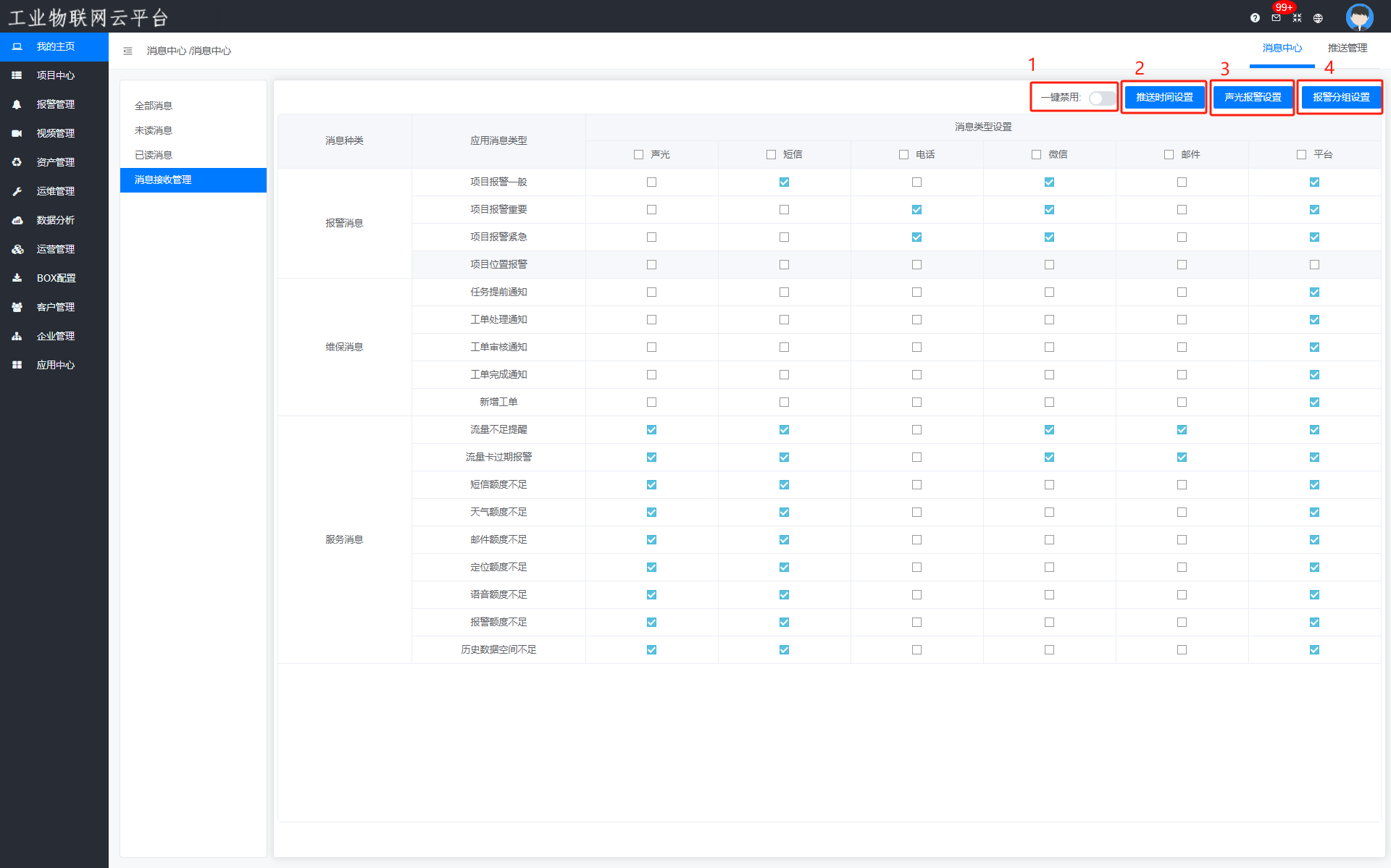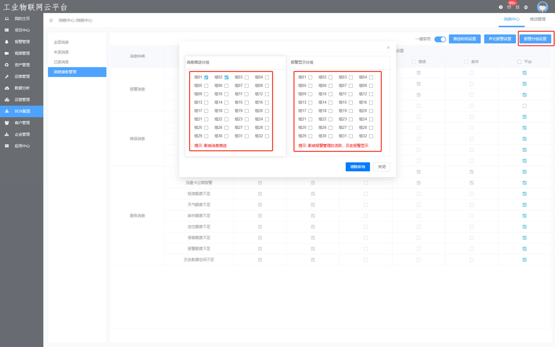 - 报警分组设置:如果配置软件勾选了报警分组,那么平台上需要勾上对应的分组,才能进行报警推送