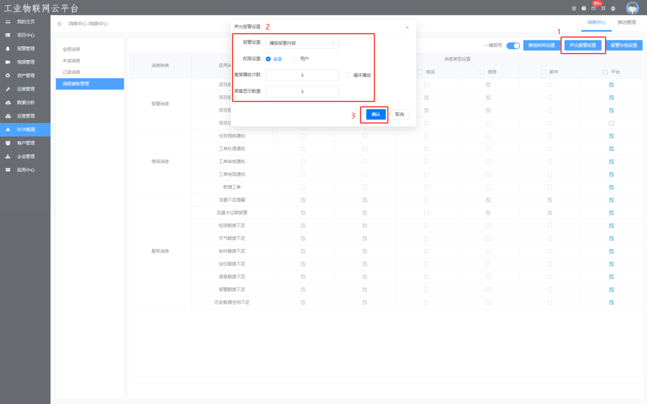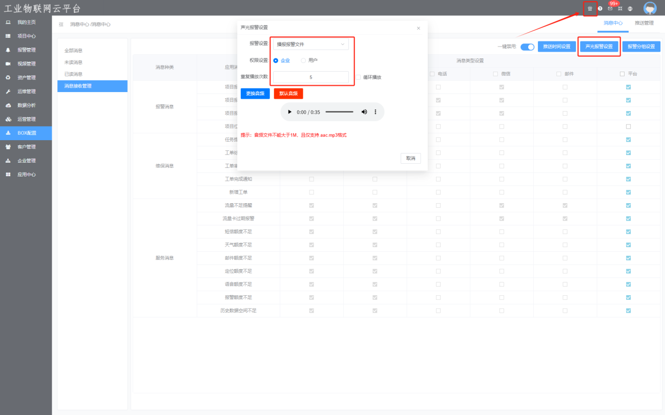 - 声光报警设置:有2种方式,默认是“播放报警内容”