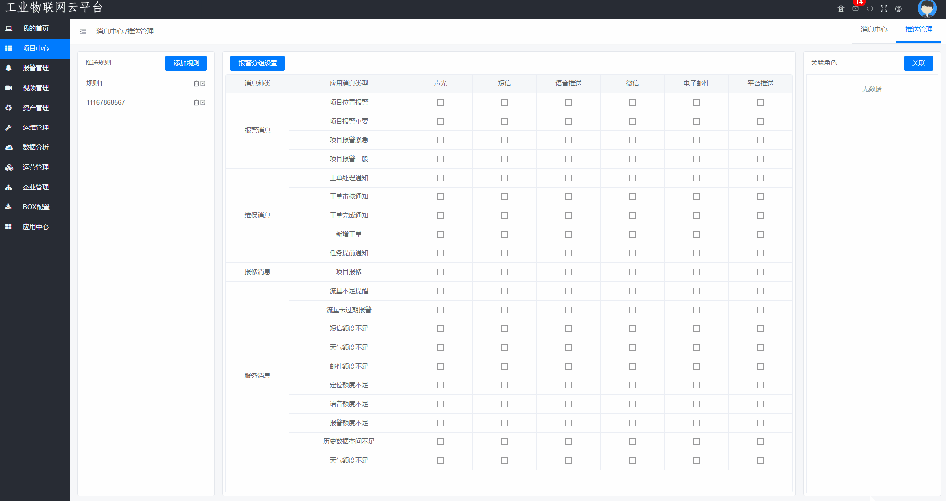 使用同一个角色的用户统一设置消息推送策略,不需要每个用户单独进行设置,从而实现批量设置推送规则的目的。