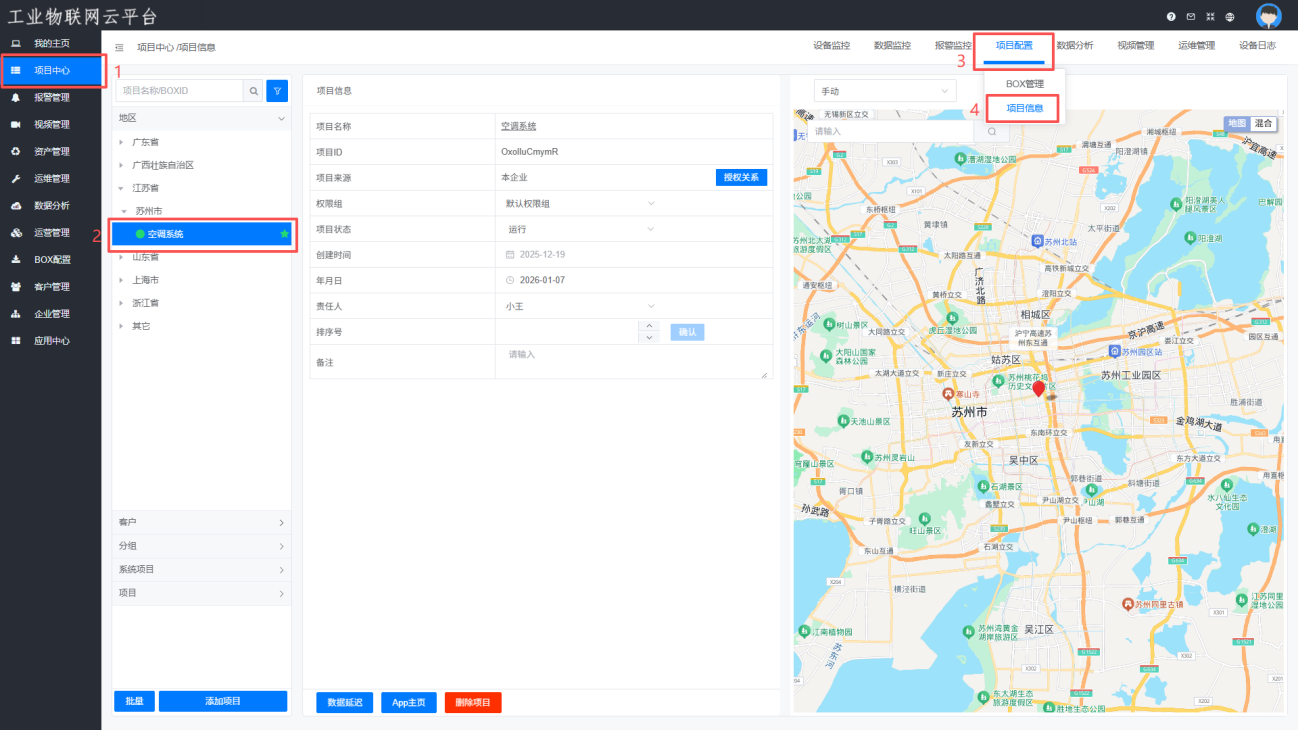 依次进入【项目中心】—>【项目配置】—>【BOX 管理】模块。