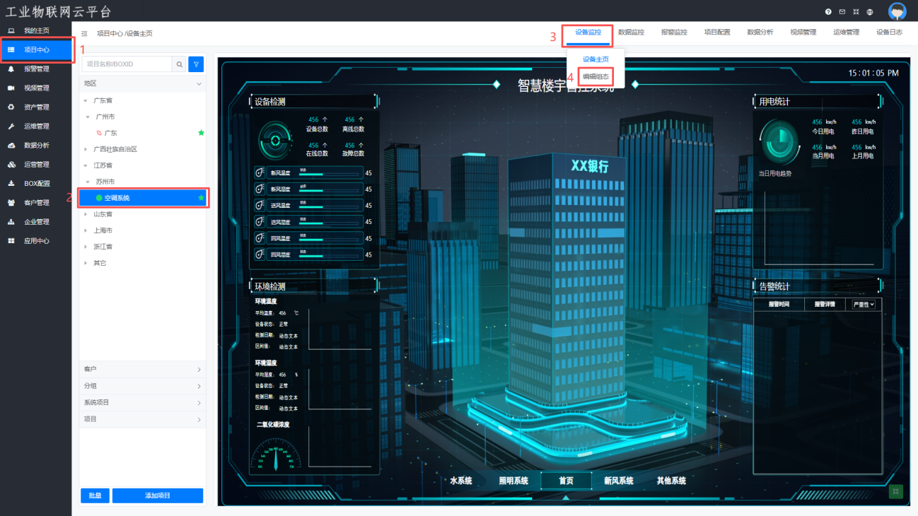 项目的组态画面支持可视化展示,其展示内容需在云组态模块中完成绘制配置。详情资料见《云组态》