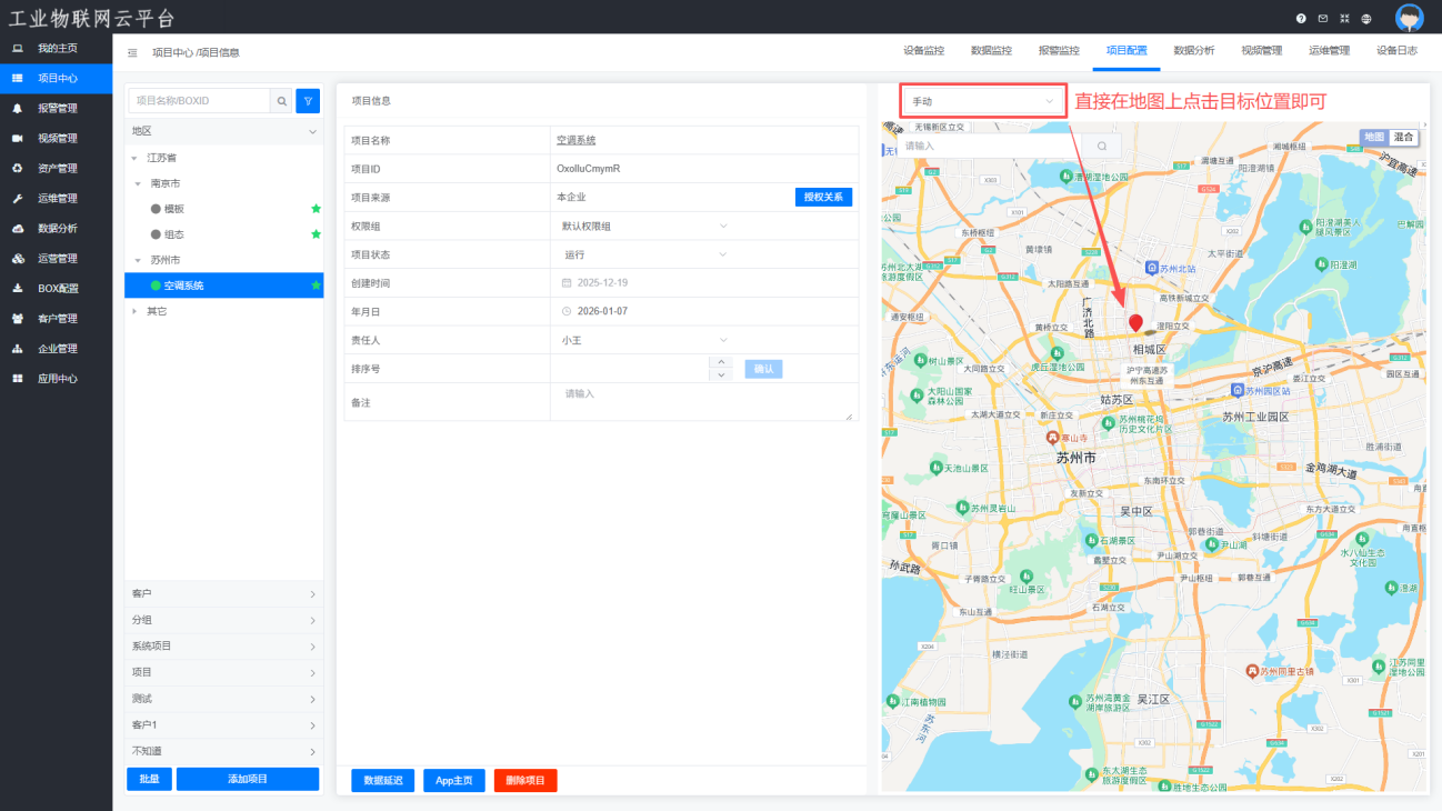 项目创建完成后仍可修改定位信息,具体操作可参考【项目配置】—>【项目信息】