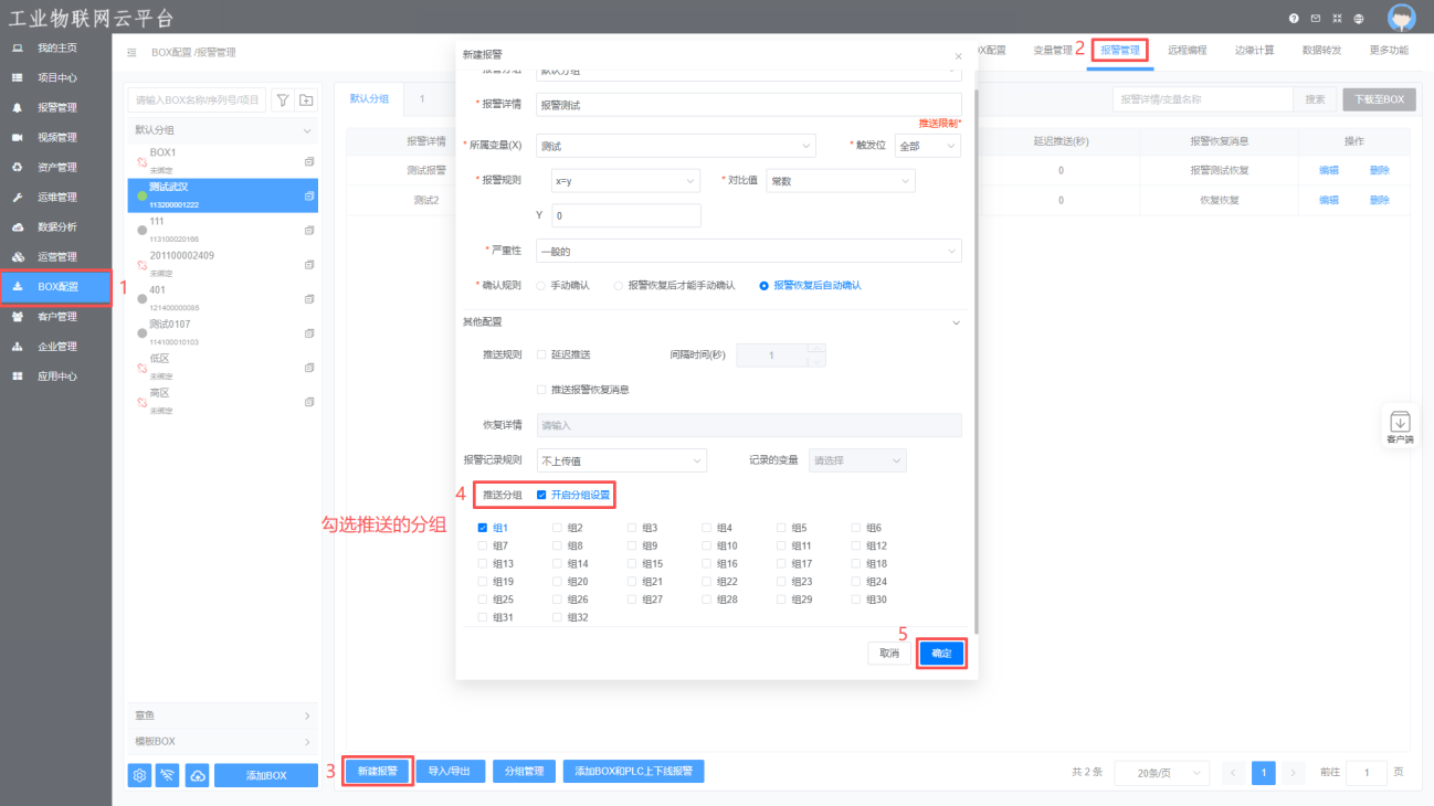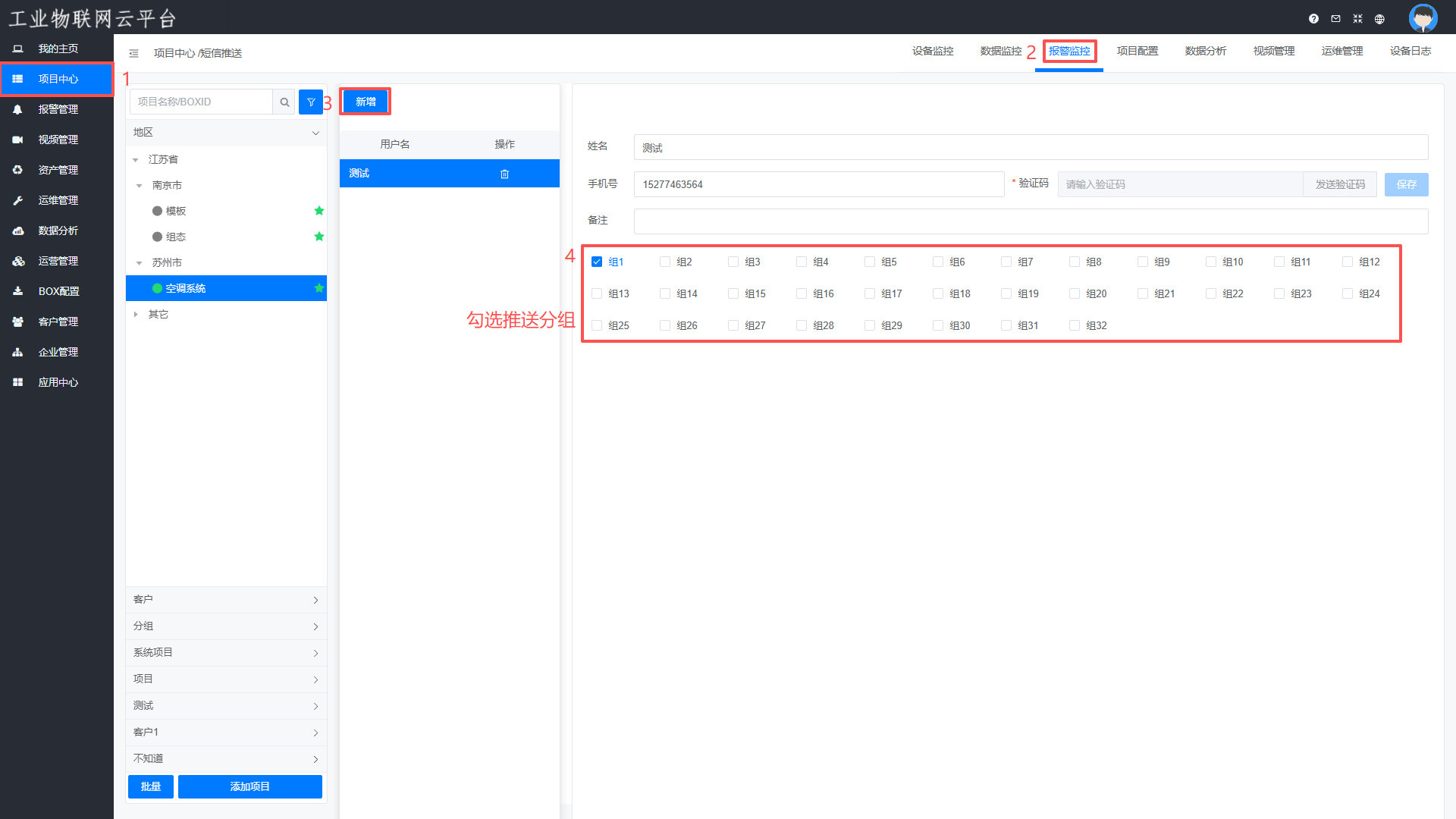 本功能适用于单个项目需向多人推送报警通知的场景,支持按报警分组执行定向推送。