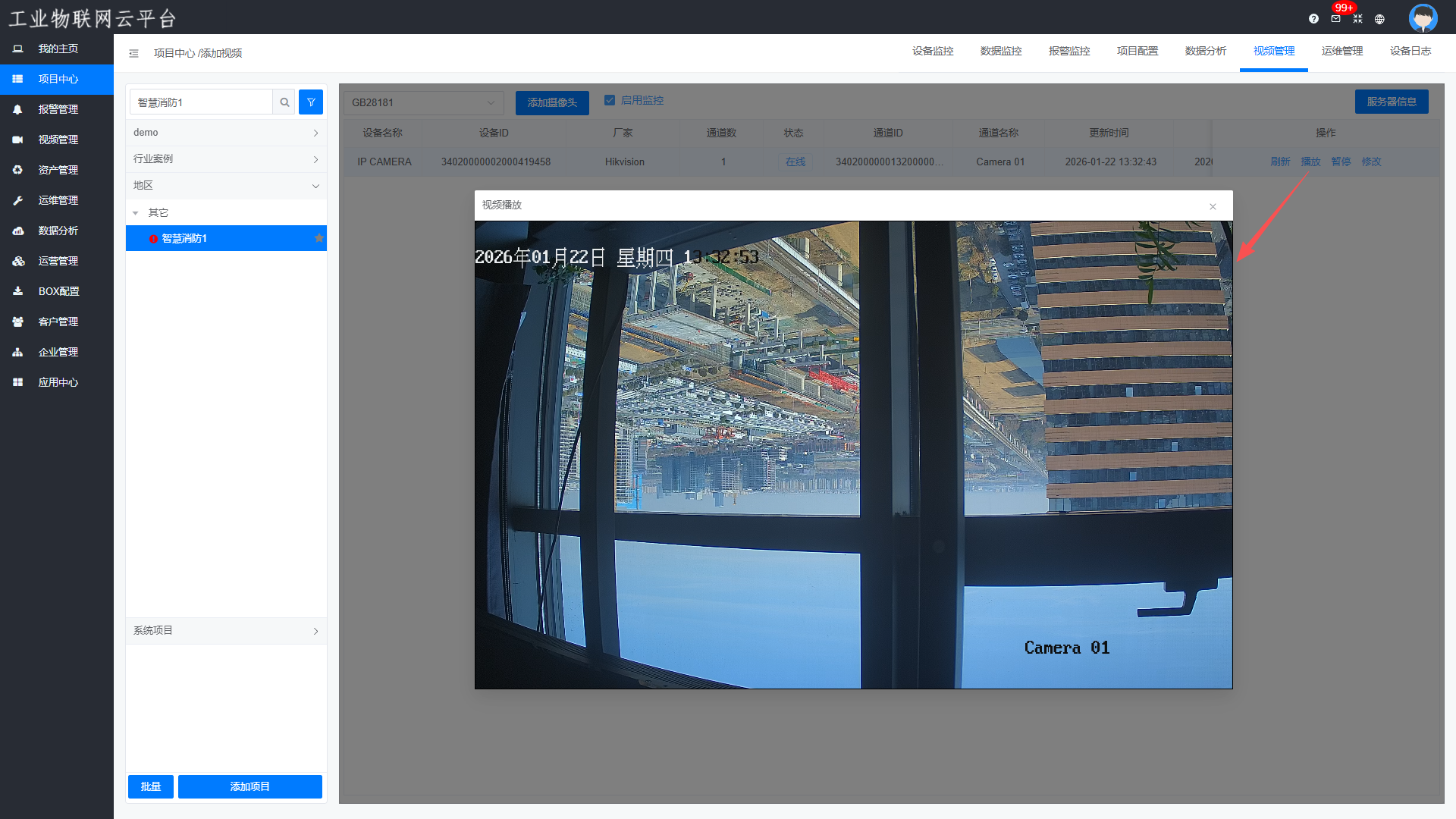 可选择萤石云直播/监控/GB28181其中一种模式的视频在设备监控页显示
