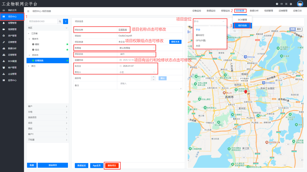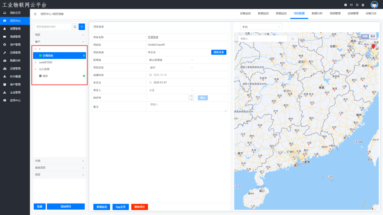 项目信息修改、BOX 绑定 / 解绑 / 更换、数据同步、数据源上传、远程编程;