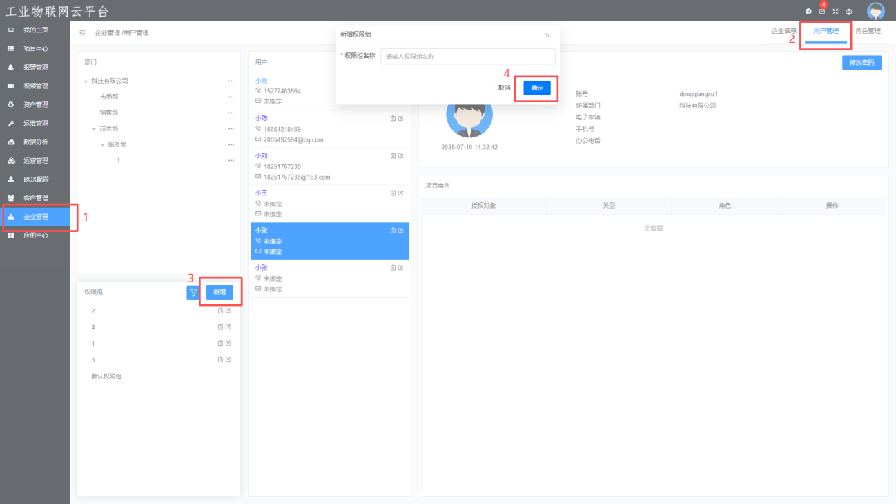 权限组:指项目归属的权限分组。可将项目划分至不同权限组,以此按权限组为企业用户分配对应项目权限;