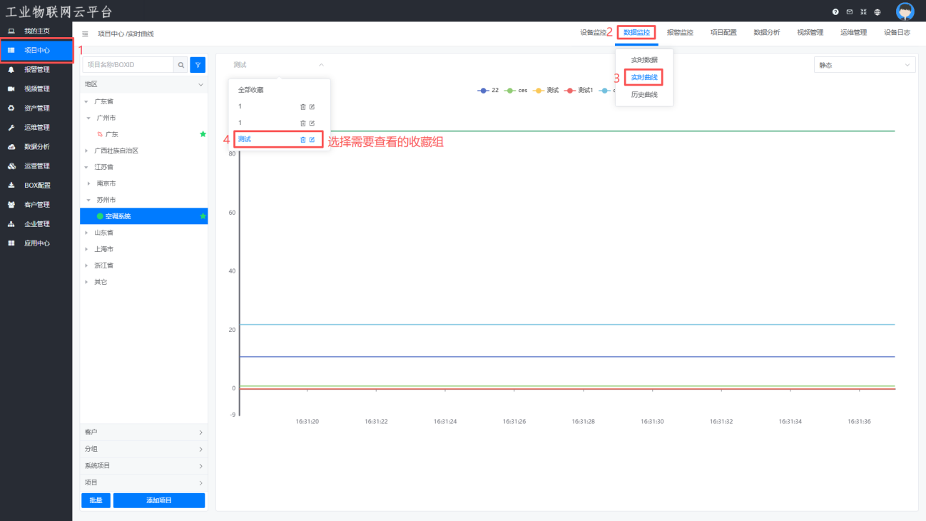 查看变量实时曲线需先完成变量收藏,收藏方法详见 2.3.1 章节。