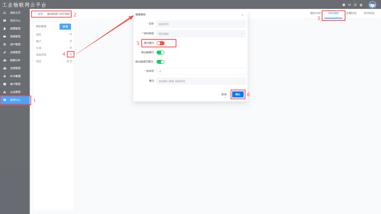 若需隐藏系统项目,可进入【应用中心】—>【基础数据】—>【项目面板】,在编辑看板中设置不展示
