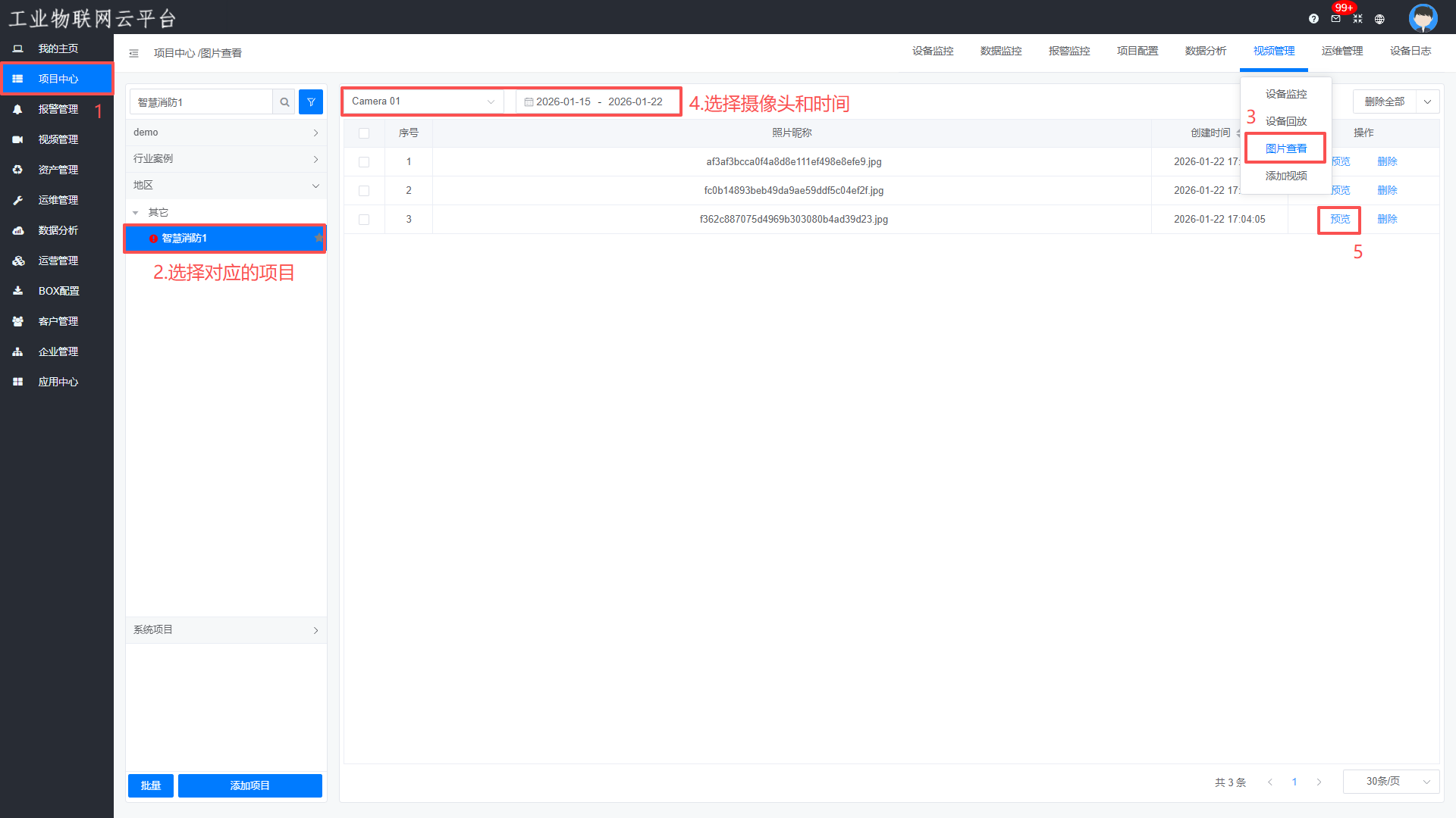 进入【项目中心】—>【视频管理】—>【图片查看】