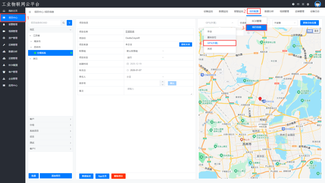 选中目标项目,依次进入【项目配置】—>【项目信息】,将项目位置设置为GPS(外置)。