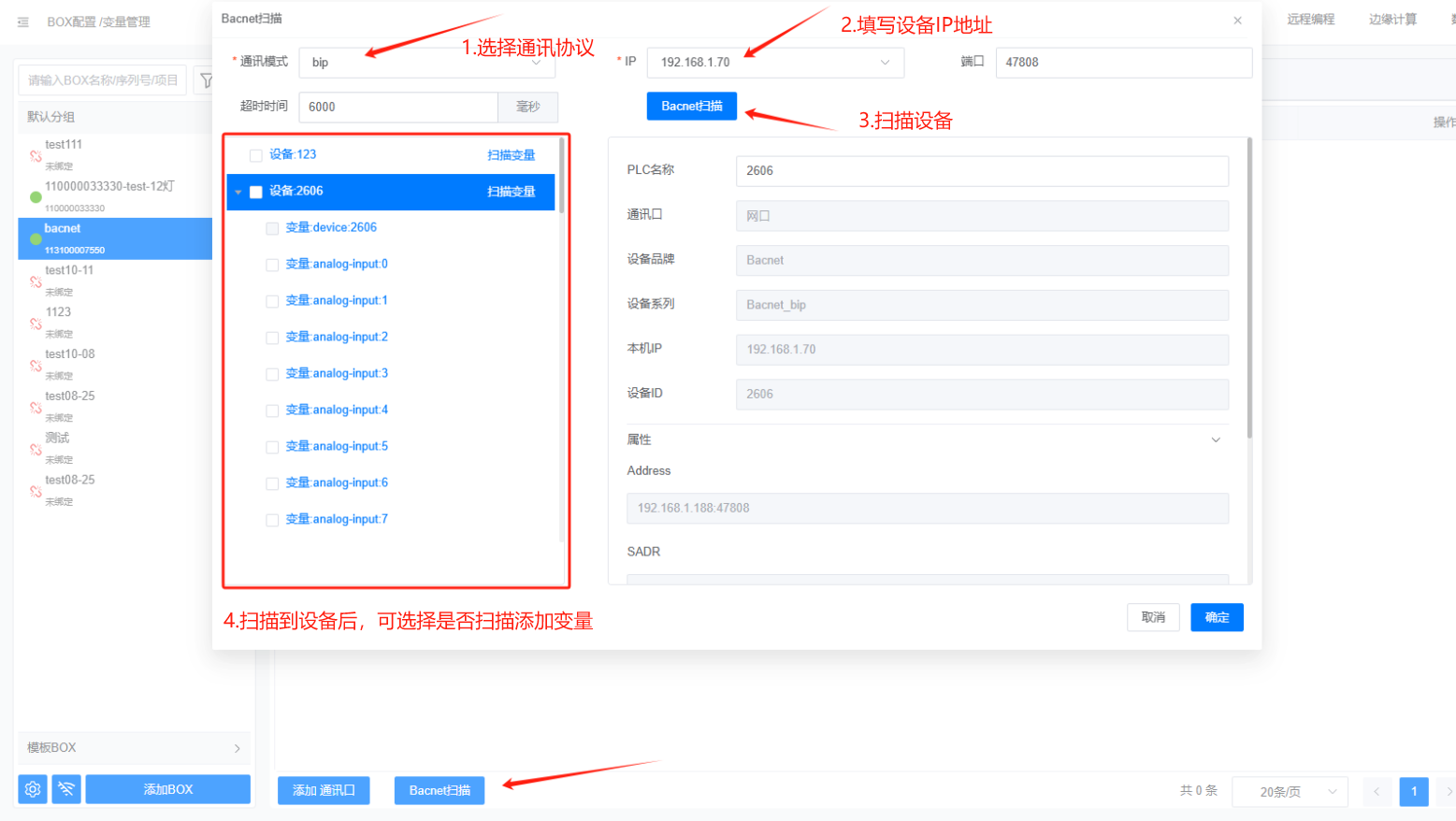 扫描添加Bacnet设备以及扫描添加Bacnet变量
