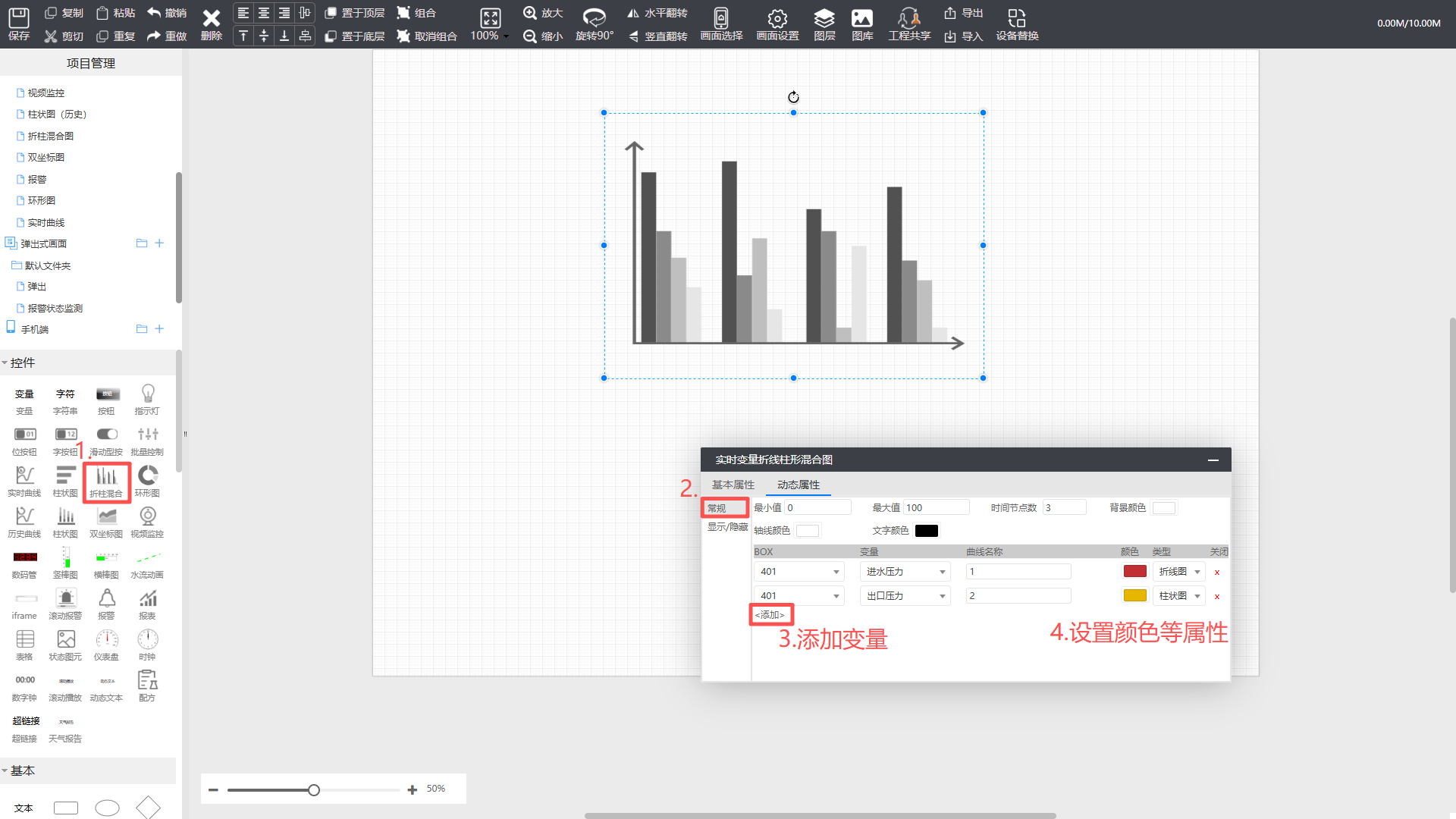 功能: 实时获取变量的最新值,以曲线和柱状图的形式同时展示。
