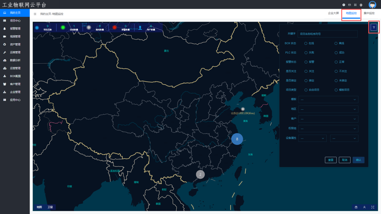 注意:仅在【项目配置】—>【项目信息】中配置了定位信息的项目,才会在本页面显示。