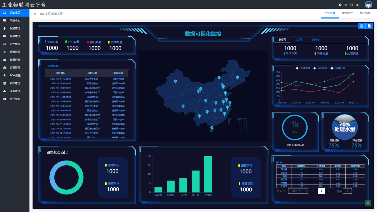 页面功能:展示项目位置分布、项目详情信息,并支持跳转至对应项目的组态页面。