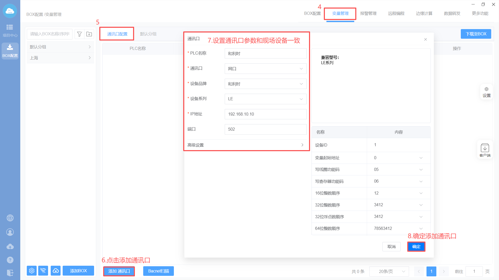 Box设置(注意:修改box参数,与PLC保持在同一网段)