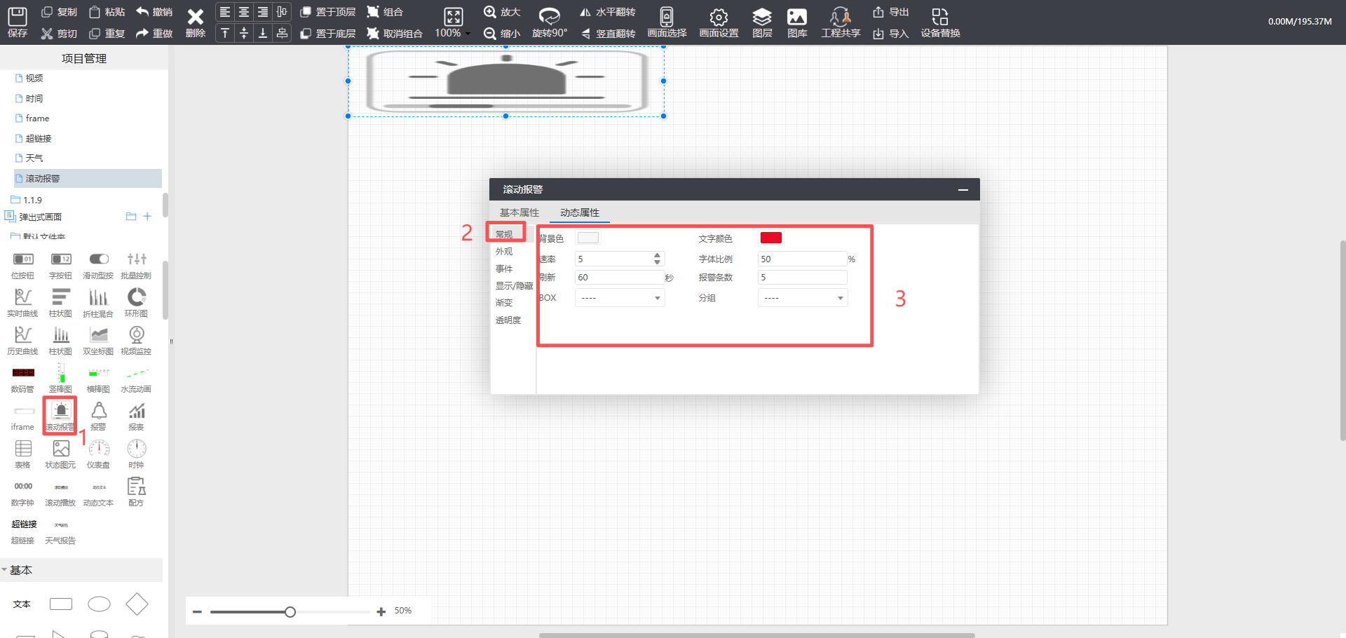 功能:滚动显示活跃报警