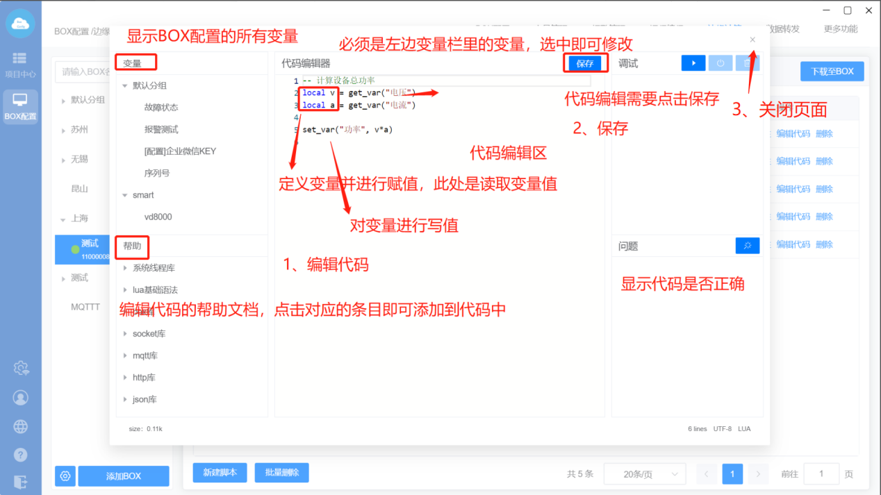 新添加的脚本显示在边缘计算列表里,状态“待同步”表示脚本还未下载到BOX里