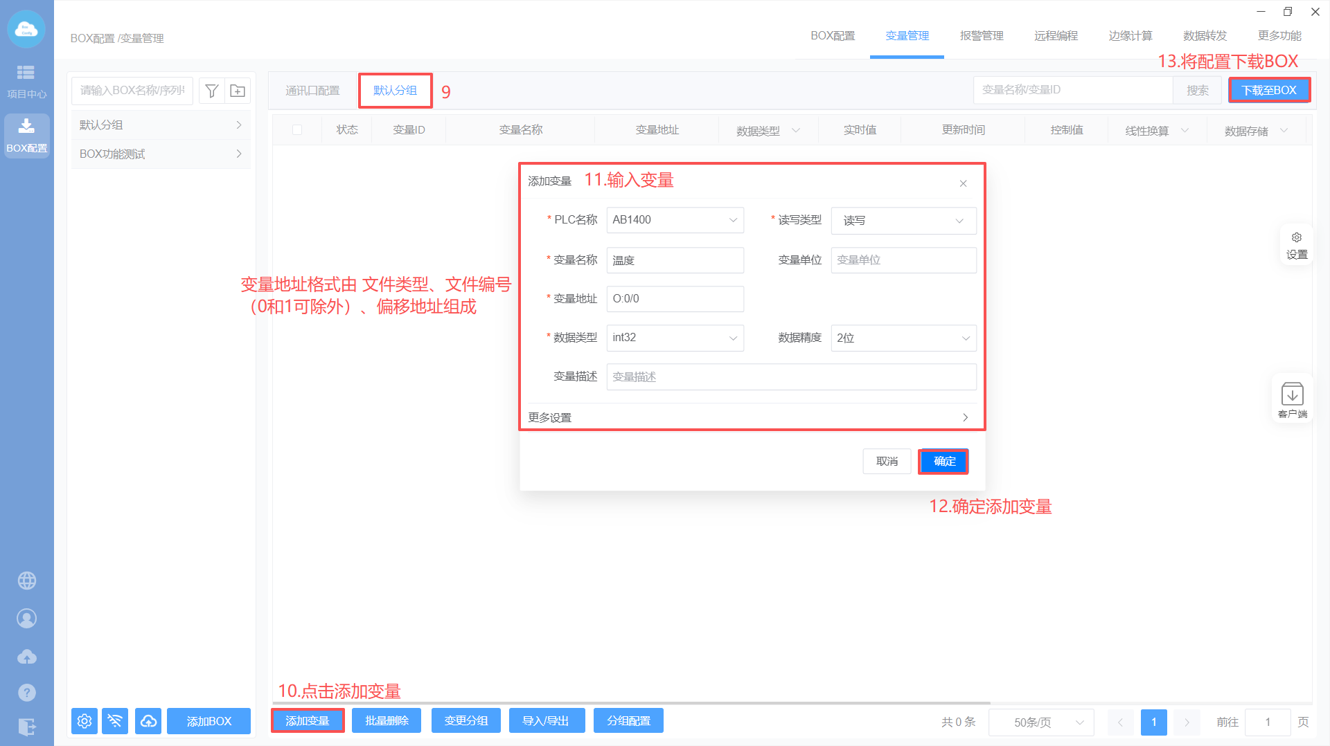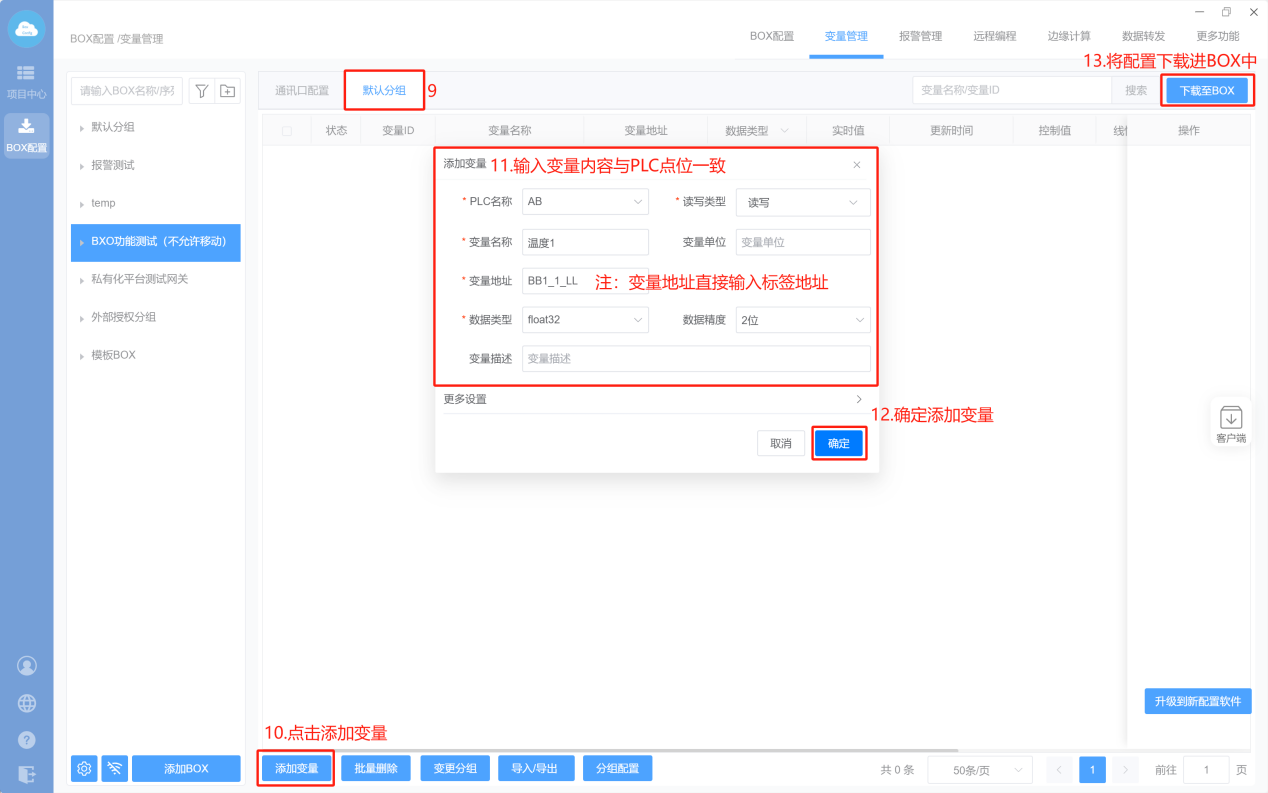 - Box配置(PLC和box的通讯参数保持一样)