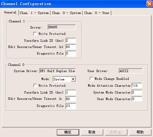 支持DF1协议,该协议兼容:SLC5/04、SLC500, 5/01,5/02 and 5/03、MicroLogix、PLC-5