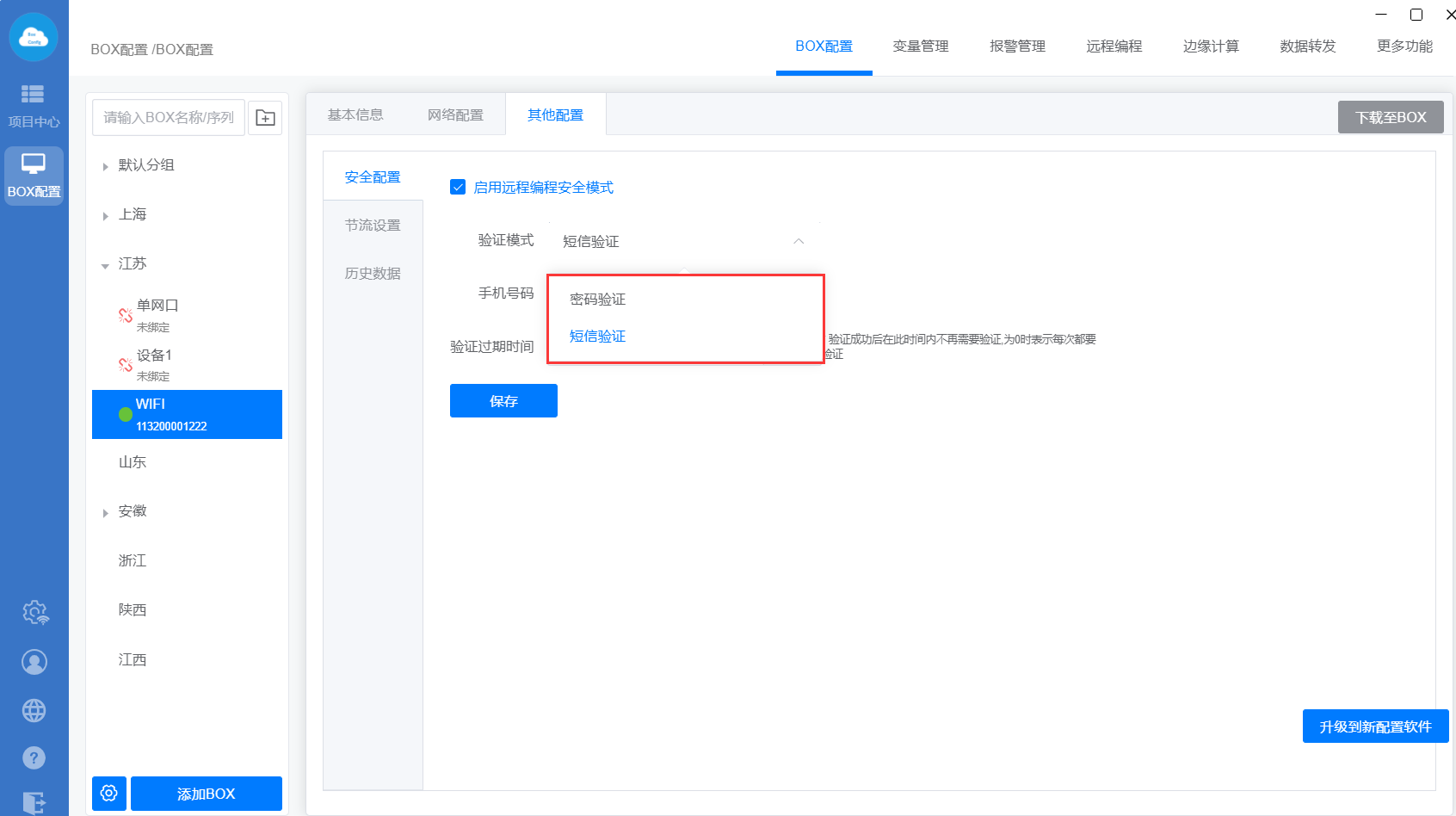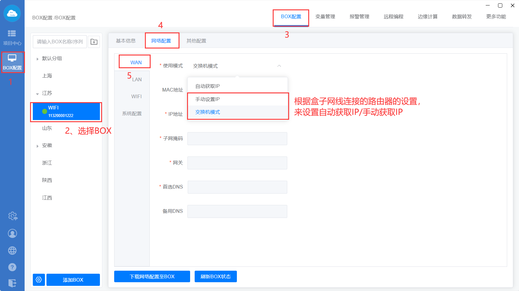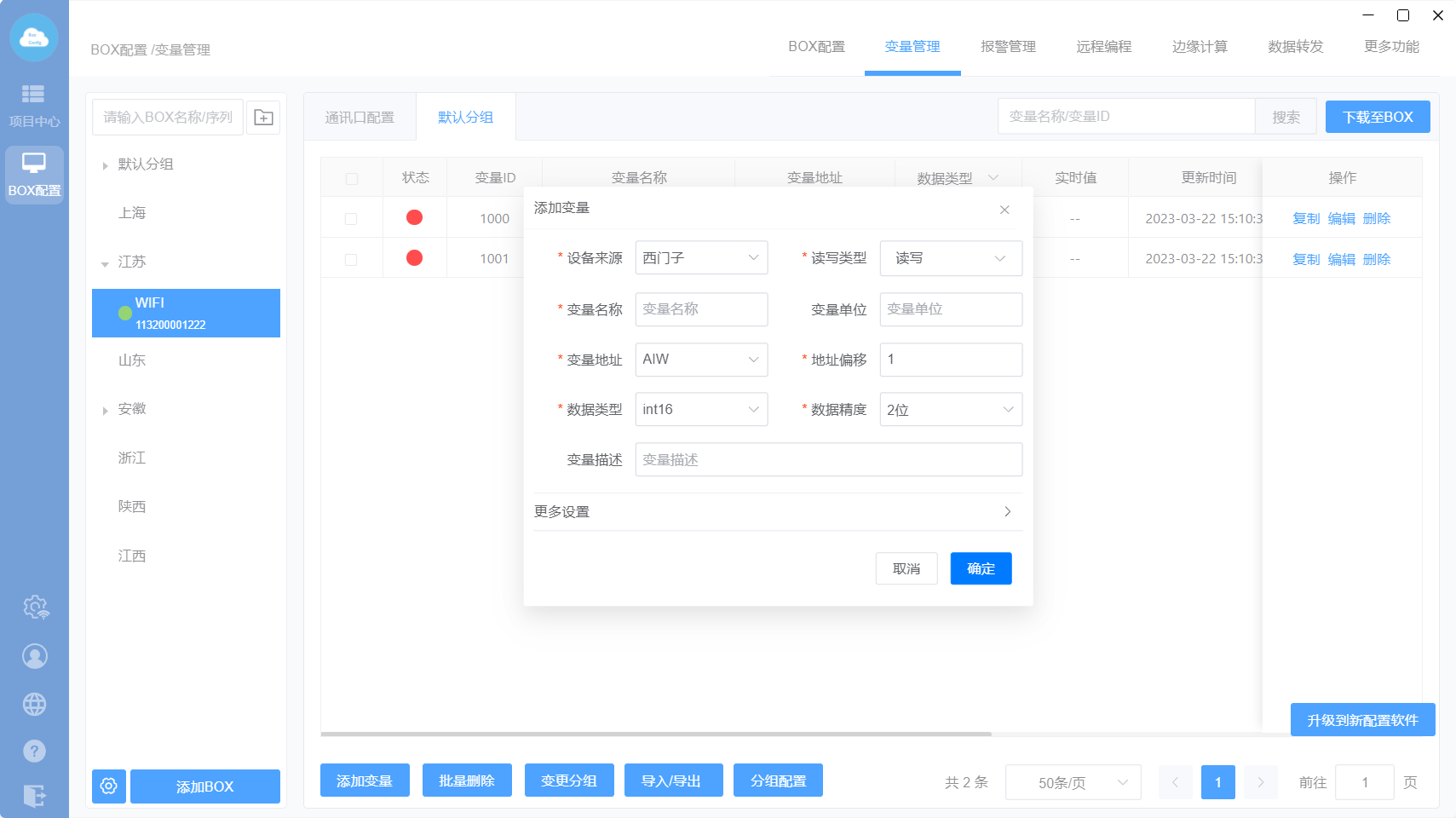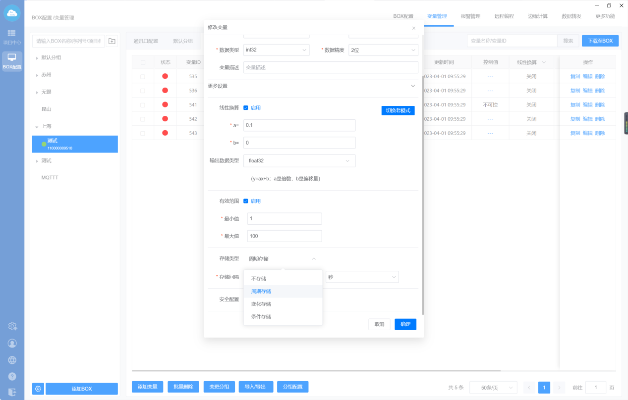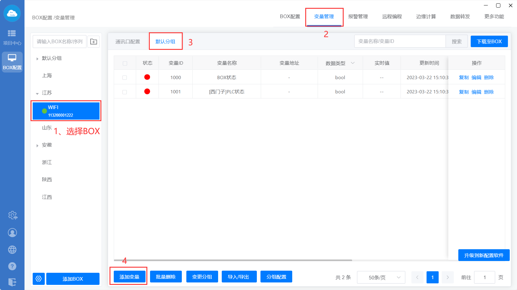 下载至BOX:把点表配置、更多功能、数据转发、边缘计算等设置直接同步到网关里面;