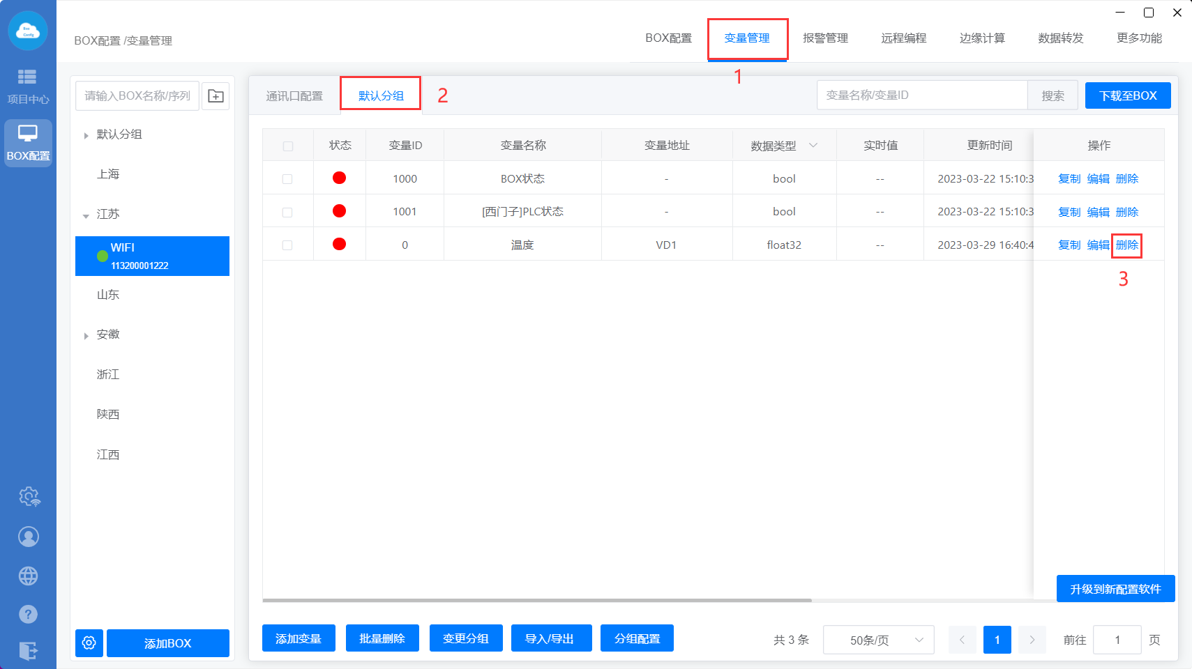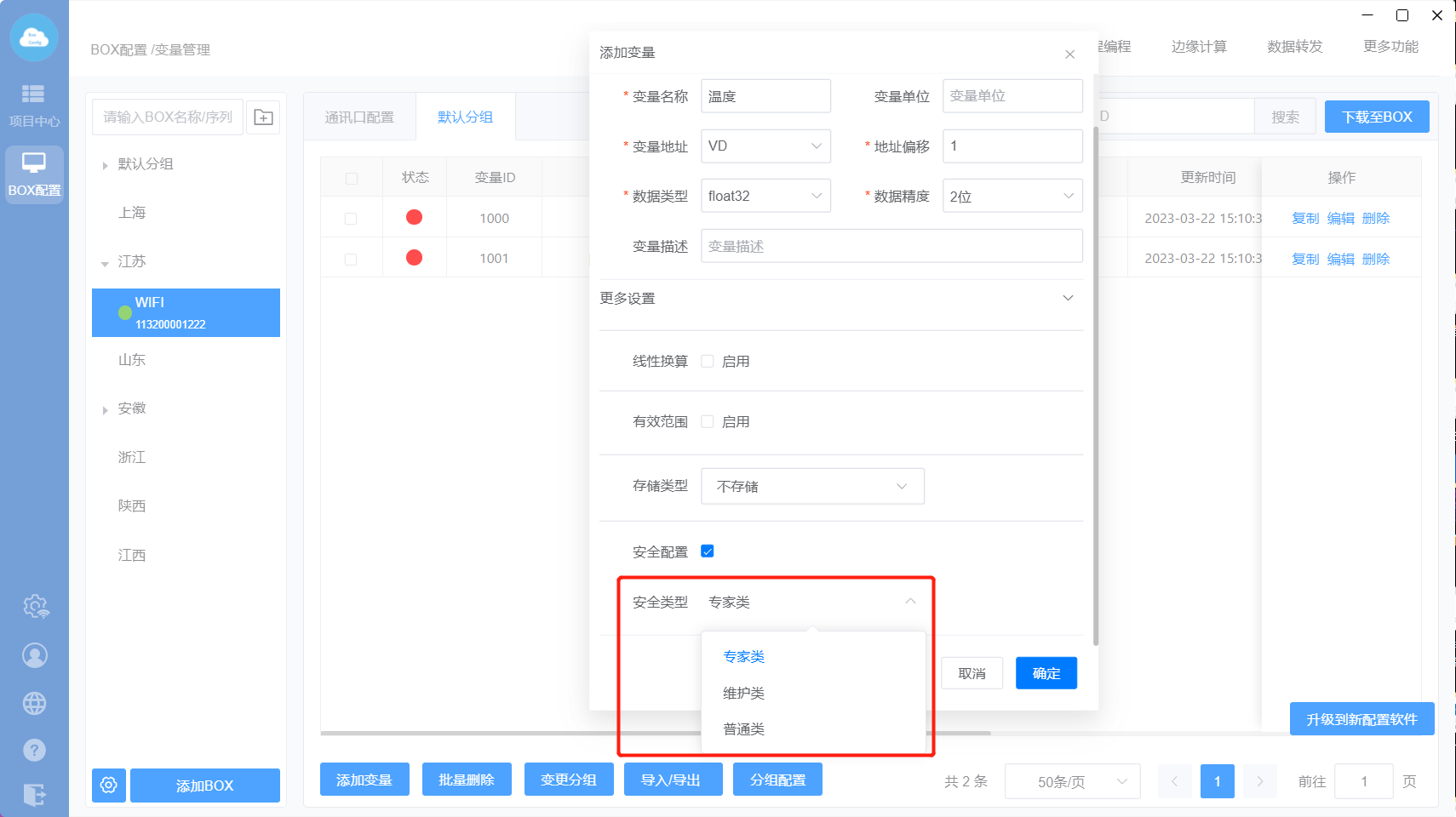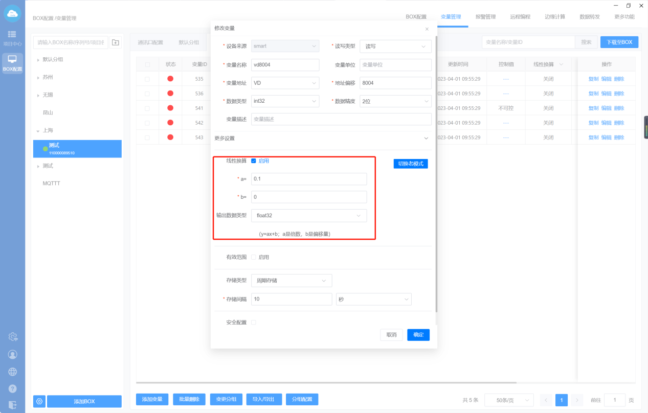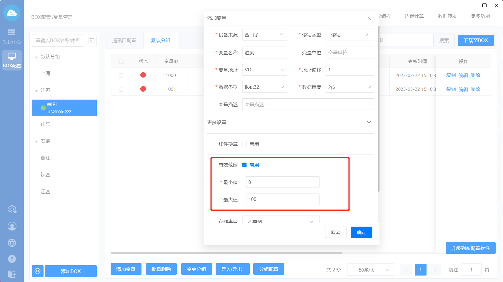 下载至BOX:把点表配置、更多功能、数据转发、边缘计算等设置直接同步到网关里面;