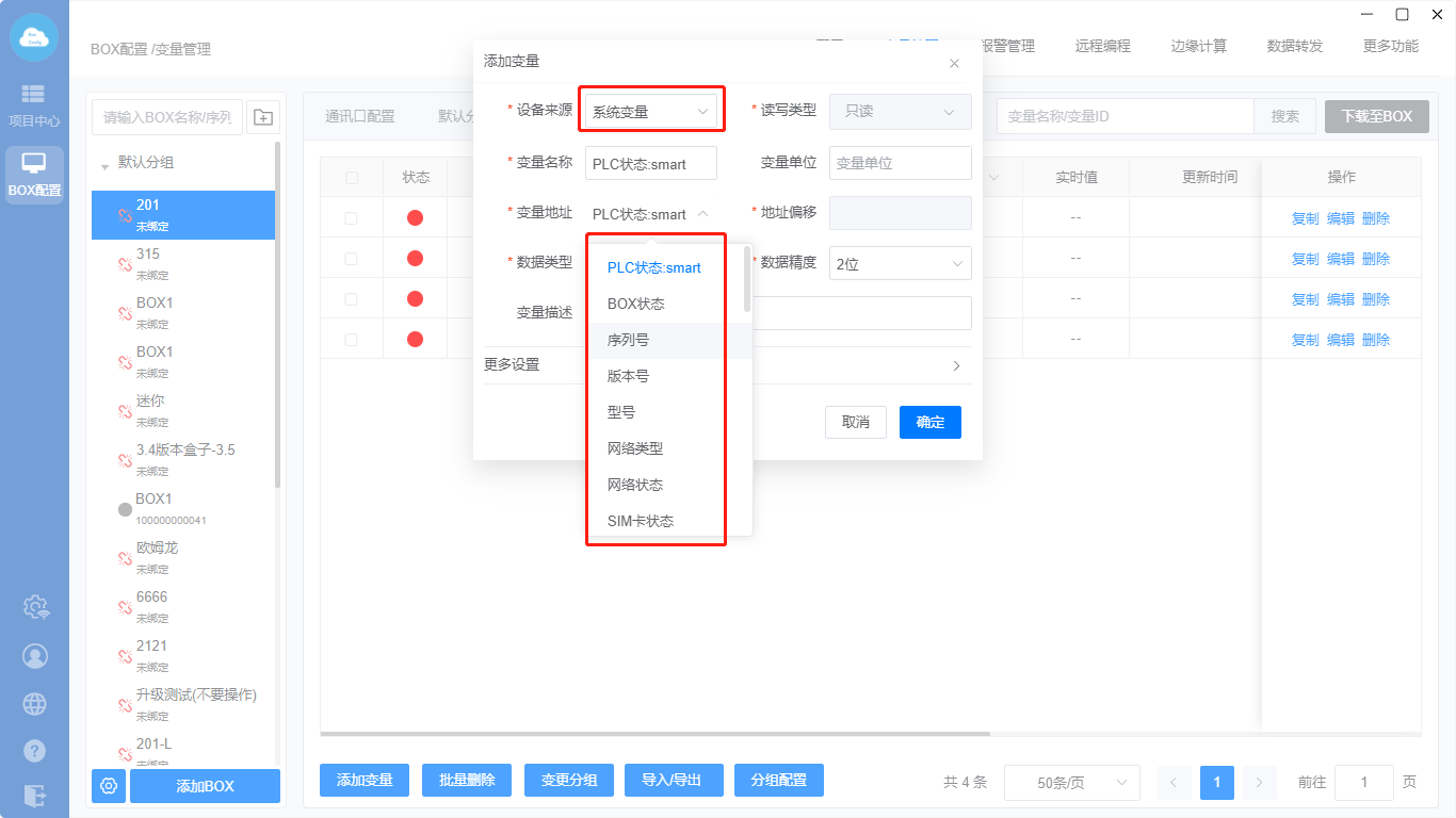 系统变量:只读,显示BOX序列号、型号等信息