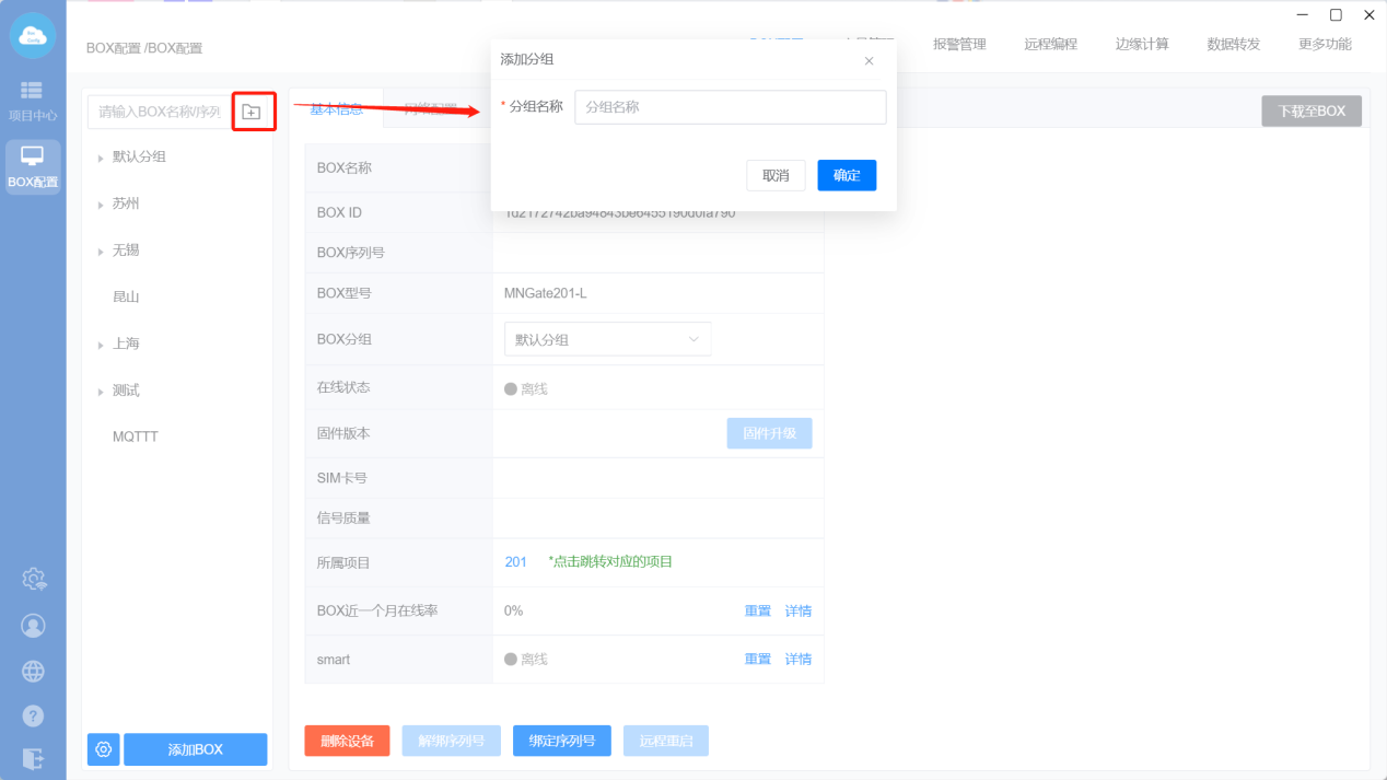 分组:根据需求可把账号下的BOX进行分组管理 ;
