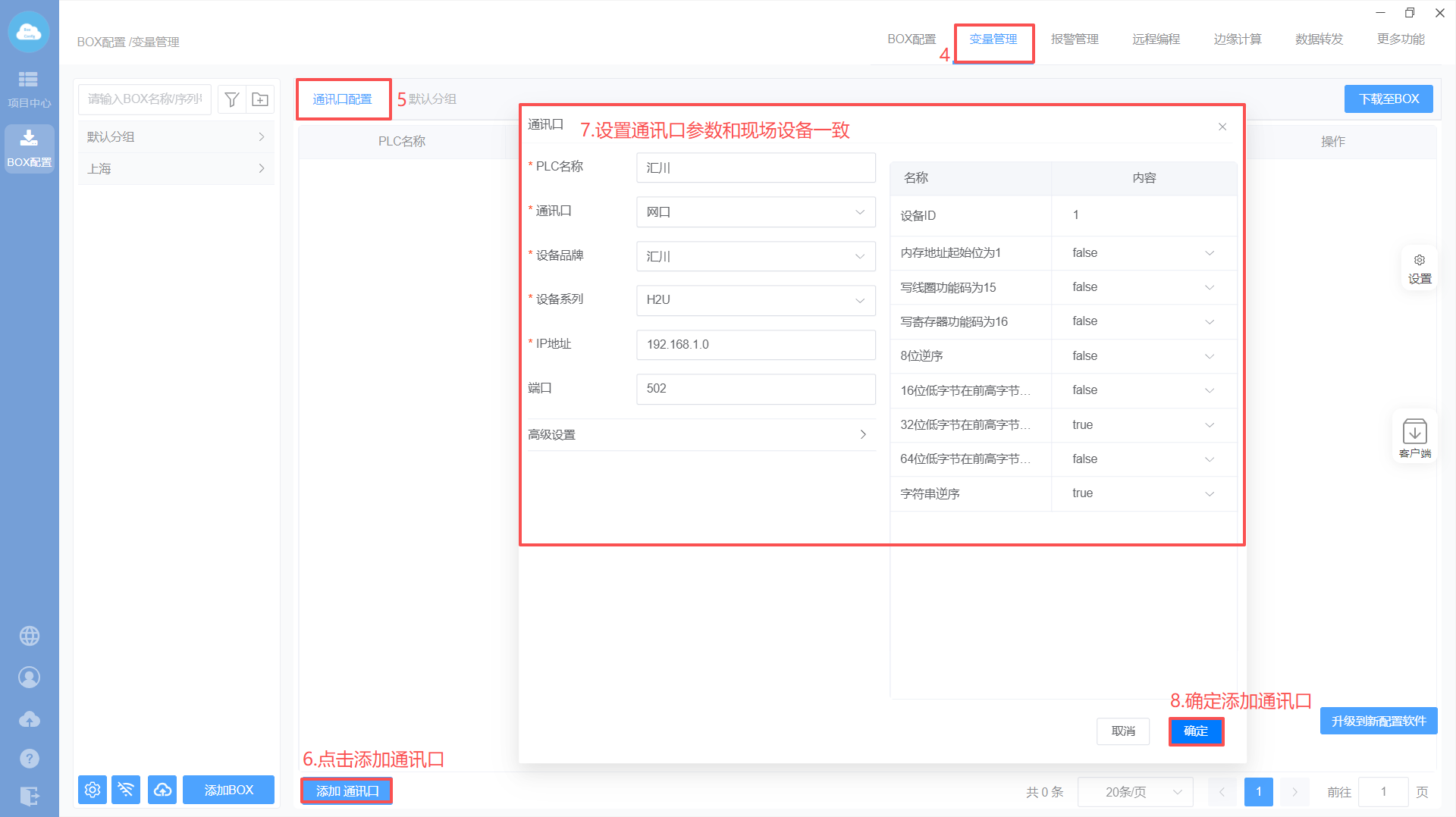 - Box配置(PLC和box的通讯参数保持一样)