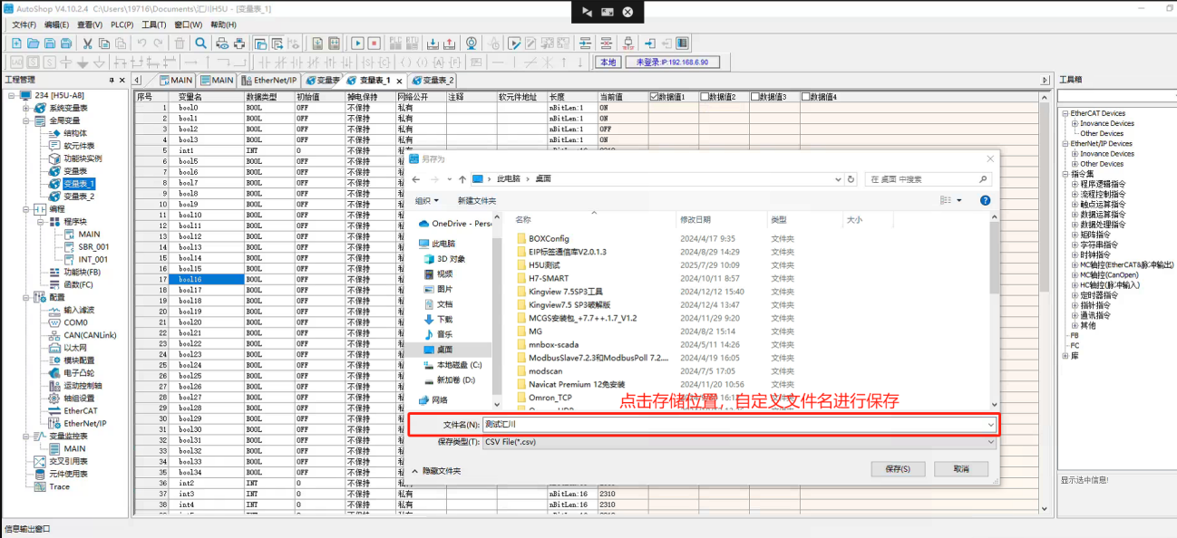 导出PLC变量点表保存到电脑上。