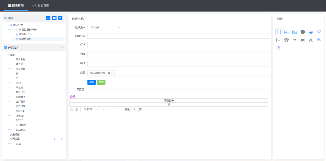 - 列表筛选:将当前看板内所有的维度提取出来,选择一个维度进行筛选