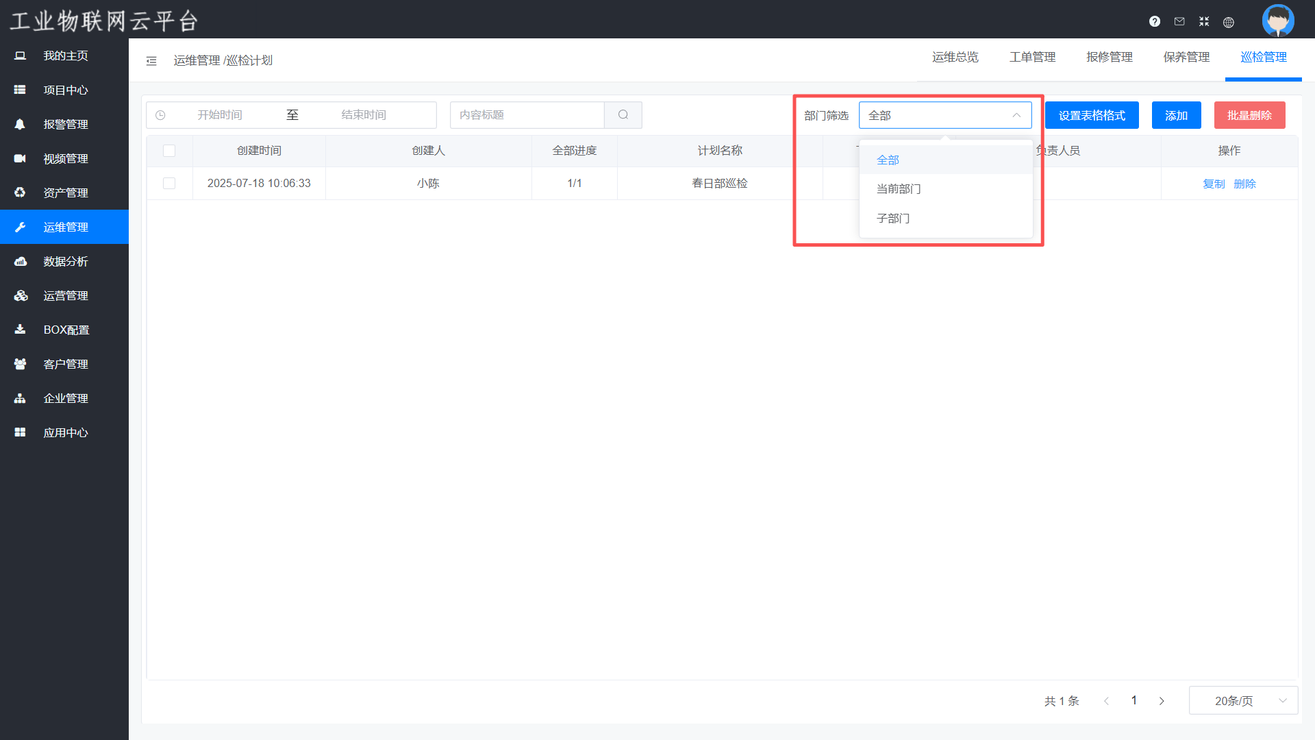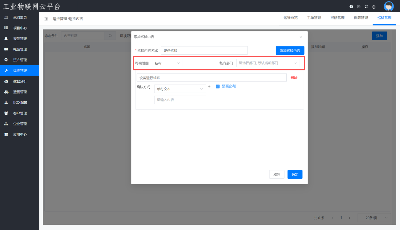 - 私有:需要选择私有部门,创建的巡检内容仅该部门人员可见