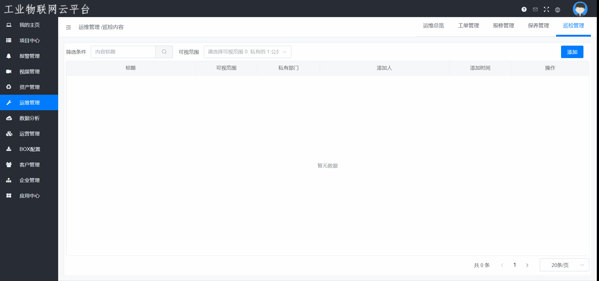 进入【巡检管理】—>【巡检内容】,点击添加按钮,操作步骤如下