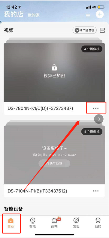登录萤石云APP, 在设备上点击更多,开始如下操作